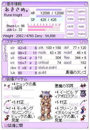 +4 ヒュッケの黒い猫耳(クリティカル強化。実は借り物)