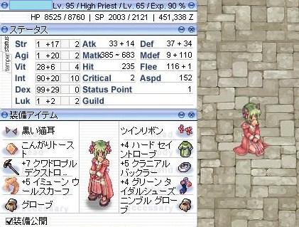 HPr、モンクのみ支援込み。装備は狩り時の汎用装備。