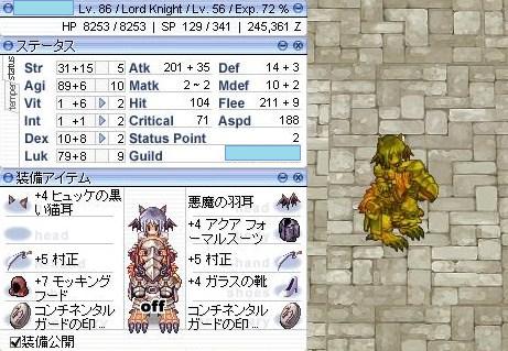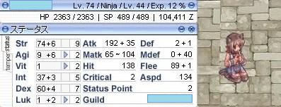 なんとかPTに少しでも貢献しようと、AGI職ながら前衛性能を装備・Pスキルともに強化中。