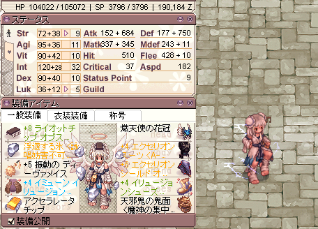 MaxHP+10kくらい、A-DefによるDef+500、水鎧+A-Frozen、IL肩による遠距離体制といった具合で耐性面がかなり上がりました。