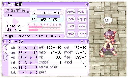 さりげなくベースも上がってBaseLv105/JobLv39に。