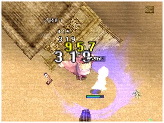 使用すると自分がぐるぐると回って、周囲5×5の敵にダメージを与え、自分を中心にノックバックさせます。