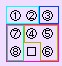 そうしたら①・②を並べて、残りの8マスをぐるぐる回すようにします。
